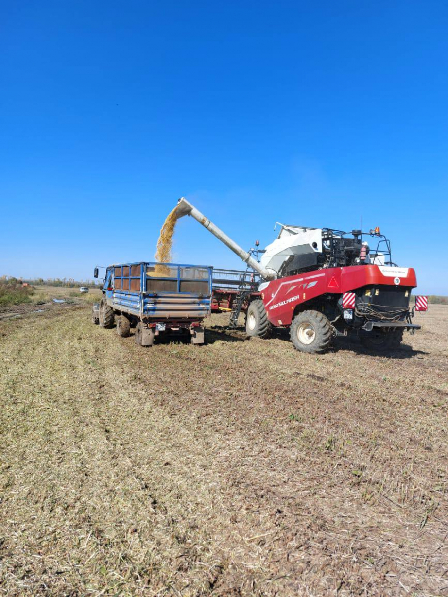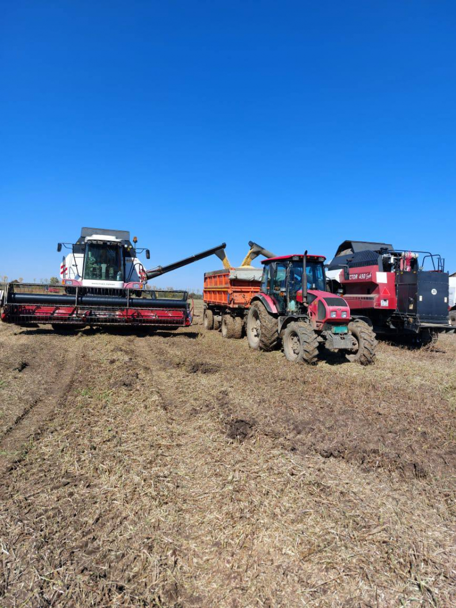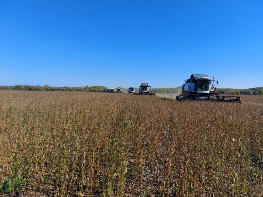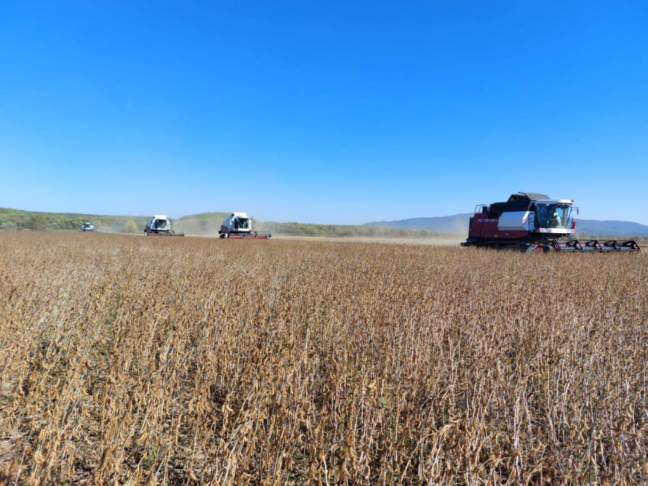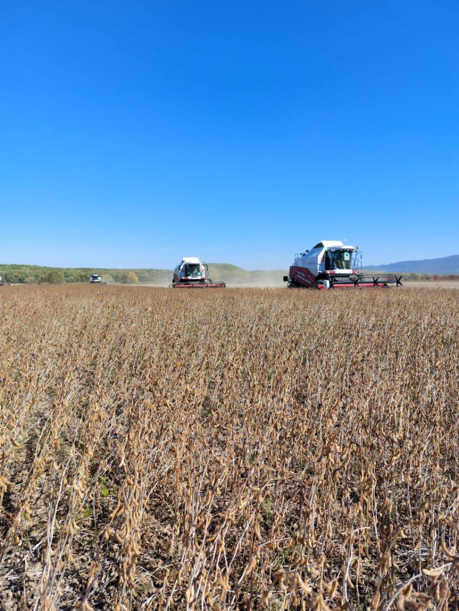 На сегодня убрано 580 га, что составляет 7% от плановых  показателей, средняя урожайность сои 16ц/га . В основном уборке подлежит соя ранних и средних сортов, поздние сорта  еще не  созрели.
